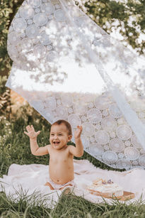 Een cakesmash kan je boeken op een leuke buitenlocatie of in mijn daglicht studio waarin ik een mooie setting maak. Kies je voor de buitenlocatie dan fotografeer ik het liefste in de vroege ochtend, latere namiddag of tegen zonsondergang (Golden hour). Het licht is dan zo mooi! Je gaat er zelf volledig verliefd op worden.